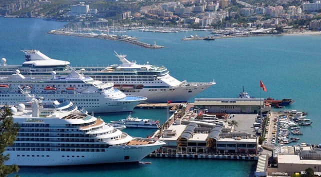 Dünyanın ve Türkiye'nin önemli turizm merkezlerinden Kuşadası’nda Ege Port limanına aynı anda 5 gemi geldi. Bu gemilerle 6 bin 700 turist günübirlik olarak Kuşadası'na giriş yaptı.