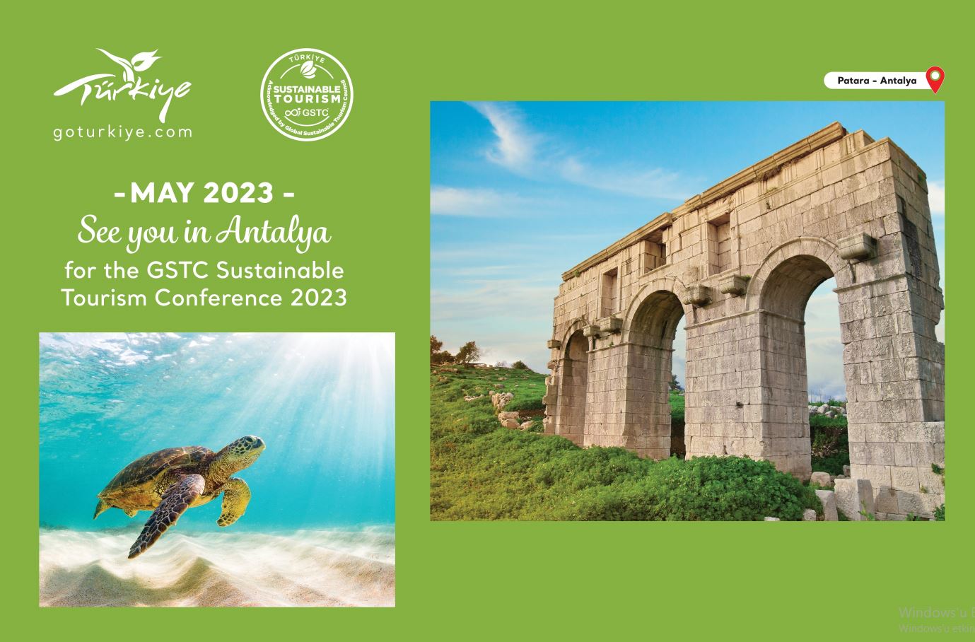 Dünyanın en üst çevre ve sürdürülebilirlik platformu olan Global Sürdürülebilir Turizm Konseyi’nin (GSTC) her yıl farklı bir ülkede düzenlediği Sürdürülebilir Turizm Konferansı, 2023 yılında Antalya’da yapılacak. Mayıs ayında düzenlenecek olan ve Türkiye’nin ilk kez ev sahibi olacağı konferansın Antalya’da yapılacağının duyurusu, İspanya’nın Sevilla şehrinde düzenlenen 2022 GSTC Sürdürülebilir Turizm Konferansı’nda GSTC CEO’su Randy Durband tarafından yapıldı.