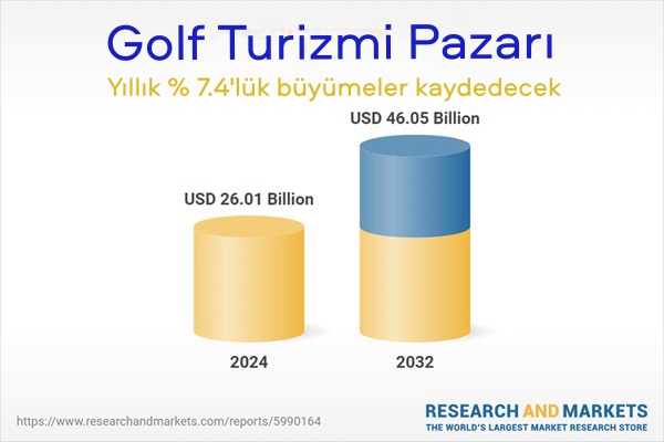 www.turkiyeturizmansiklopedisi.com'un araştırma şirketi Research & Markets uzmanlarının hazırladığı "Pazar Araştırma Raporu 2024-2032" adlı çalışmasından derlediği bilgilere göre, Küresel golf turizmi pazarı 2023'te yaklaşık 24,22 milyar ABD doları değerine ulaştı. Deneyimsel seyahatin artan popülaritesinin de yardımıyla, pazarın 2024-2032 döneminde yıllık ortalama yüzde 7,4'lük büyümelerle 2032'de 46,05 milyar ABD doları değerine ulaşacağı tahmin ediliyor.