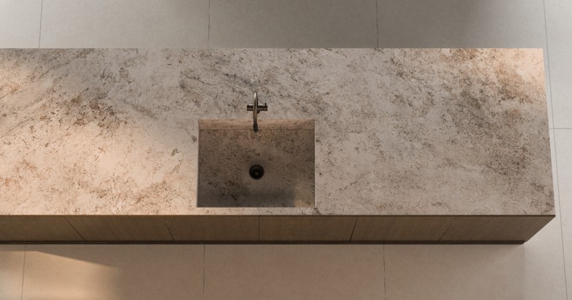 Gıda Temasına Uygun: Yüzeyi tamamen hijyeniktir. Kesme tahtasına ihtiyaç duymadan doğrudan slab yüzeyde sebze doğranabilir, hamur açılabilir, meyve dilimlenebilir. Bakteri riski oluşturmaz.