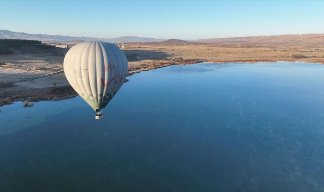 Sivas'ın doğal güzellikleri arasında yer alan Hafik Gölü'nde, turizmi geliştirmek amacıyla sıcak hava balonu uçuş testi yapıldı.