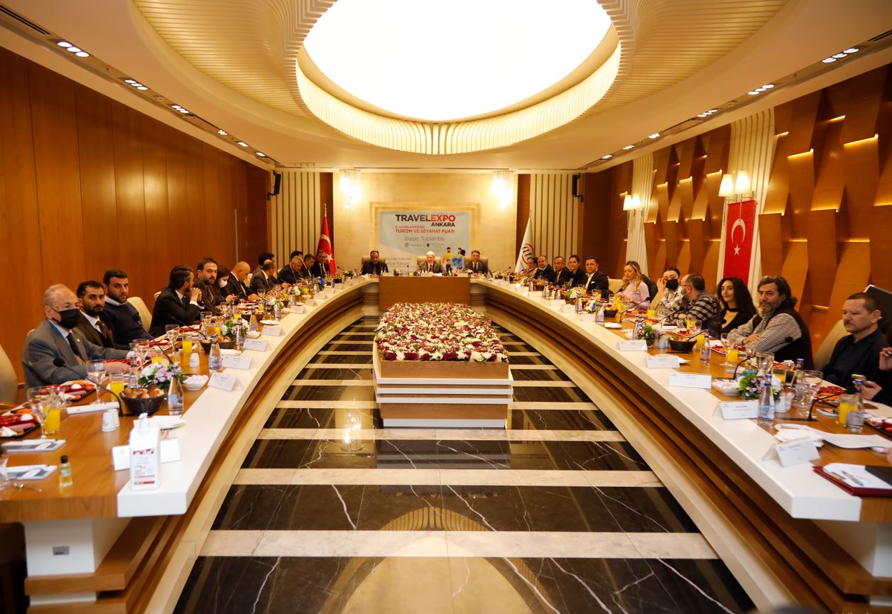 Fuar öncesi basın mensupları ile buluşan Ankara Ticaret Odası (ATO) Başkanı Gürsel Baran ve Atis Fuarcılık A.Ş Yönetim Kurulu Başkanı Bilgin Aygül Ankara’nın kültürel ve tarihi imkanlarının tanıtılmasında önemli rol oynayacak 5. Uluslararası Turizm ve Seyahat Fuarı TRAVELEXPO ANKARA hakkında önemli açıklamalarda bulundu. Toplantıya; Kent Konseyi Başkanı Halil İbrahim Yılmaz, Turizm Akademisyenleri Derneği Başkanı Prof. Dr. Muharrem Tuna, ATİD Başkanı Birol Akman, ANTOD Başkanı Atilla Aytun, ATO Turizm Komitesi Başkanı Savaş Çolakoğlu, Ankara Kent Konseyi Kale Grubu Başkanı Eski Vekil Sevket Bülent Yahnici, Ankara Büyükşehir Belediyesi Turizm Müdürü Aykut Cıngır, Ankara Kültür İl Müdürü Ali Ayvazoğlu katıldı.